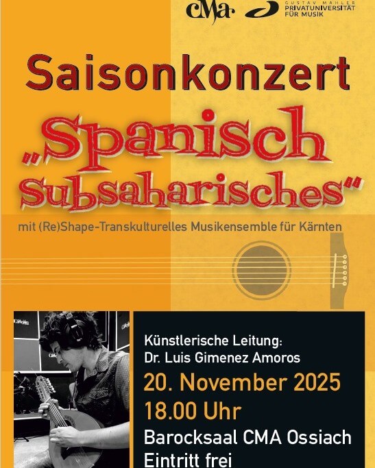 20.11.2025 | 18:00Dr. Luis Gimenez Amoros ist ein in Lissabon arbeitender spanischer Gitarrist, Komponist und Researcher. Im Rahmen seiner Aufenthalte als Dozent für Musikethnologie in Algerien, Mali, Zimbabwe, Südafrika, Indien, Malaysia und zuletzt als Stipendiat der Humboldt Stiftung an der Universität Köln hat er sich intensiv mit transkulturellen, außereuropäischen Musikpraktiken, „Migrant Music“ und „Post-Colonial Studies“ beschäftigt. In seiner Musik verbindet Amoros daher traditionelle, spanische Elemente mit anderen Einflüssen aus Europa, Asien und Afrika, die er von seinen künstlerisch-forschenden Wegen mitgebracht hat.